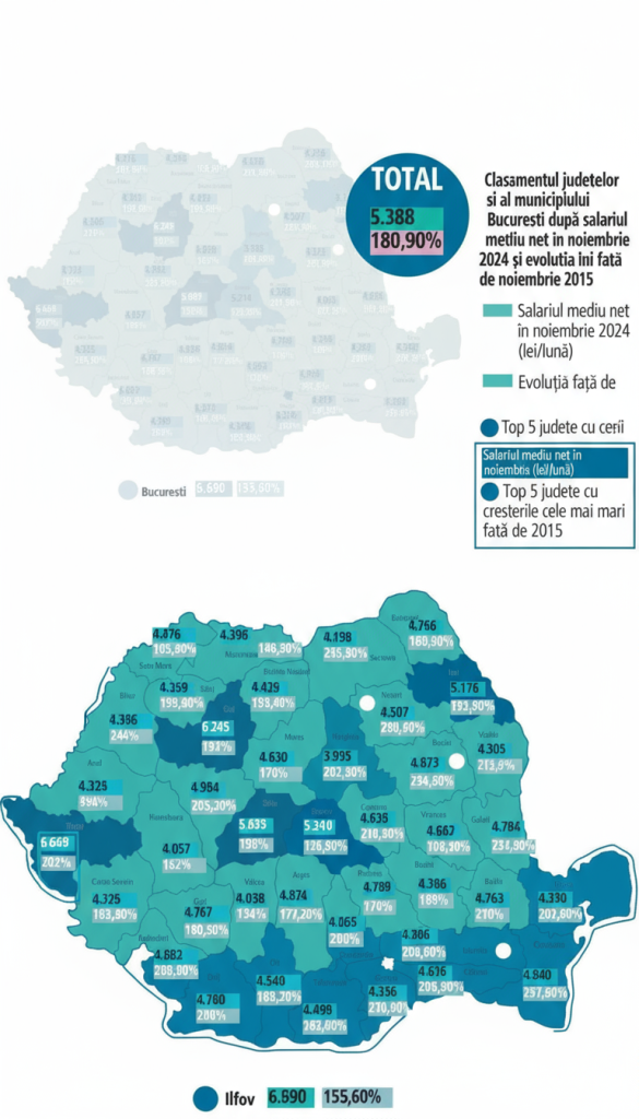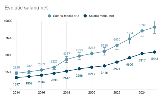 „Potrivit datelor INS, salariul mediu net în România a crescut 4,1% în luna septembrie 2025 față de perioada similară a anului trecut și cu 1% mai mult față de luna august. Dacă ne raportăm la august 2015, majorarea a fost de peste 254%, o creștere impresionantă, atât în termeni nominali, cât și reali. Cu toate acestea, deși creșterea, atât în termeni nominali, cât și în termeni reali, a fost impresionantă în ultimii ani, România rămâne la coada țărilor europene atunci când vine vorba de salariul pe oră. Astfel, în țara noastră salariul mediu brut pe oră este 10,8 euro, comparativ cu 24 euro cât este media europeană. Avem însă și printre cele mai mari taxe pe salarii, motiv pentru care un angajat mediu în România rămâne cu circa 57% din acești bani”, explică Ion Soltinschi, consultant și planificator financiar www.mrfinance.ro