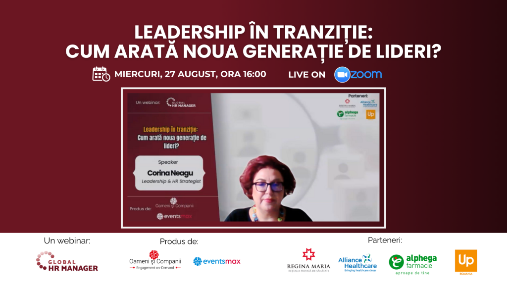 Webinarul a fost moderat de Oana Yücel, Business Coach & Trainer, și a avut-o ca invitată pe Corina Neagu, Leadership & HR Strategist, Global Trainer, EMCC Senior Practitioner Mentor & Coach. Corina a oferit idei și sugestii prin care specialiștii de HR sau antreprenorii pot crește lideri care inspiră. Mai mult, invitata a discutat despre concluziile studiului Global Leadership Forecast 2025, conform căruia doar 29% dintre angajați mai au încredere în liderul direct.