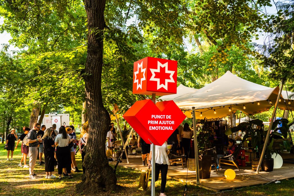 În mijlocul unui festival vibrant, acest spațiu oferă un loc sigur, unde participanții pot vorbi deschis cu psihoterapeuți cu experiență despre ce îi apasă: de la oboseală acumulată și stres, până la provocări în relații sau întrebări despre sine.